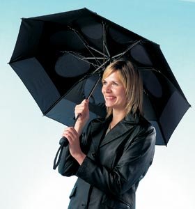 Stay dry, even when the wind blows! The clever design of this Black Windproof Umbrella will ensure you never struggle in windy conditions again! The specially placed vents ensure this sturdy and totally windproof umbrella offers complete protection from the rain and never blows inside out even in very strong winds. The windproof umbrella is made from a tough waterproof nylon with two velcro straps to keep it closed. A must for any handbag or briefcase. Measures approx 43cm long when closed, 59cm when open. 90cm Diameter when open. Soft Touch Handle with wrist strap .Includes carry pouch with shoulder strap.Push button release.Reinforced spokes for extra rigidity.Eight large vents allow wind to pass through.