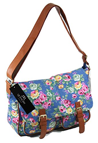 Quenchy London offer Ladies Womens Girls Satchel Canvas Cross Body Bag Messenger Bags Daisy Print QL5151M (Blue Flower). This awesome product currently limited units, you can buy it now for £12.99, You save -