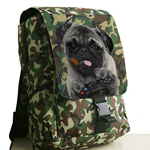Krafty Gifts offer Personalised Gamer Pug Funny Camouflage Army Backpack School Rucksack Overnight Travel Gym P.E Laptop Bag ** Add a Name or Text** Gift. This awesome product currently limited units, you can buy it now for £14.99, You save -