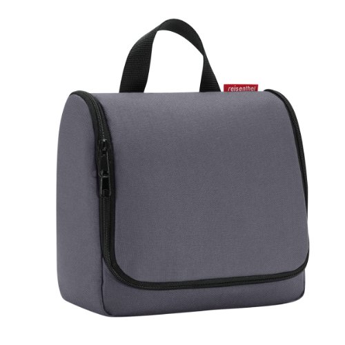 The toiletbag will pack a maximum of toiletries into one (small) place. Suspended by its loop, the unzipped keeper of your beauty secrets will answer the age old question “Mirror, Mirror on the wall…” , Just open and hang it up: anywhere at home or on the road! , 1 large main compartment with 4 additional pockets , 2 zip pockets in the cover , Suspension hook , Mirror can be attached to the inside with Velcro fastening , Exterior material: tearproof polyester fabric Length: 23 cm Height: 20 cm Depth: 10 cm Volume: 3 l Capacity: max. 3 kg Colour: graphite reisenthel article number: WH7033 , Pack contains:1 reisenthel Toiletbag, Hanging Wash Bag, Make-Up Bag, Beauty Case, graphite, WH7033